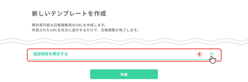 ④テンプレートの設定画面下部の「追加項目を表示する」をクリックします。
